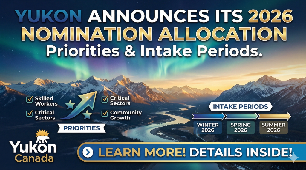 The Yukon Nominee Program (YNP) has unveiled its 2026 nomination allocation and priorities, giving employers and prospective immigrants greater clarity about how the territory plans to support permanent residence nominations this year. Yukon received 282 nomination spaces from the federal government, and the territory has structured its intake and selection system to focus on key […]